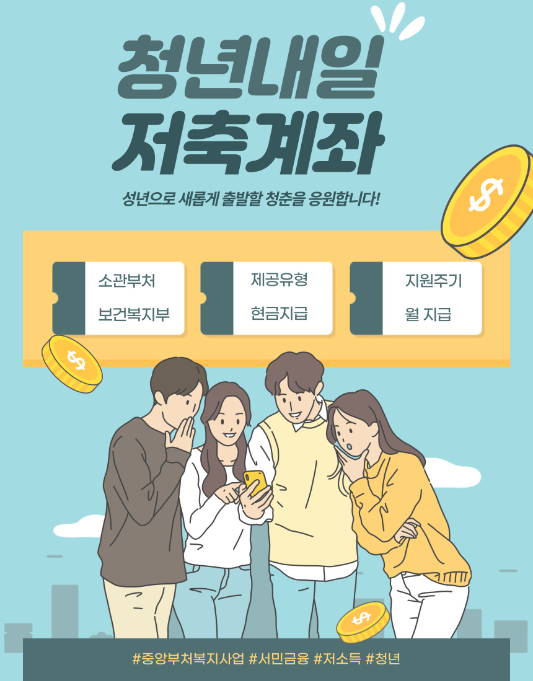 청년내일저축계좌는 청년 맞춤형으로 나온 복지서비스이기 때문에 해당자는 부담없이 신청하면 될 것 같습니다.