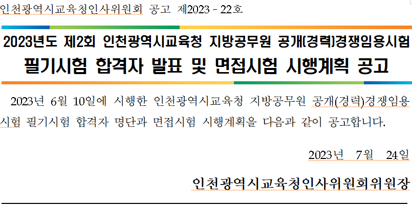 2023 지방직 9급 교육행정직 인천 필기시험 합격자 확인