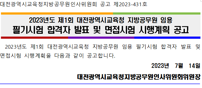 2023 지방직 9급 교육행정직 대전 필기시험 합격자 확인