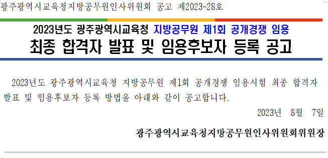 [공고문]2023년도광주광역시교육청지방공무원제1회임용시험최종합격자발표및임용후보자등록공고.hwp