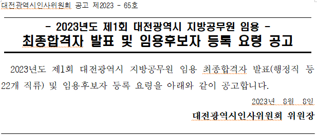 2023년도 대전 지방공무원 임용시험 결과 최종합격한 337명 예비공무원 여러분 진심으로 축하드립니다.