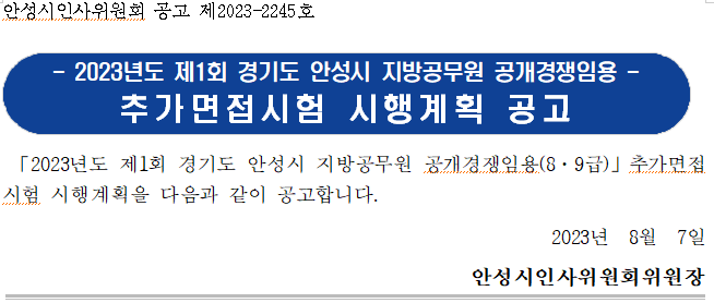 (공고문)(추가면접) 2023년도 제1회 경기도 안성시 지방공무원 공개경쟁임용 추가면접시험 시행계획 공고(안성) (1).pdf