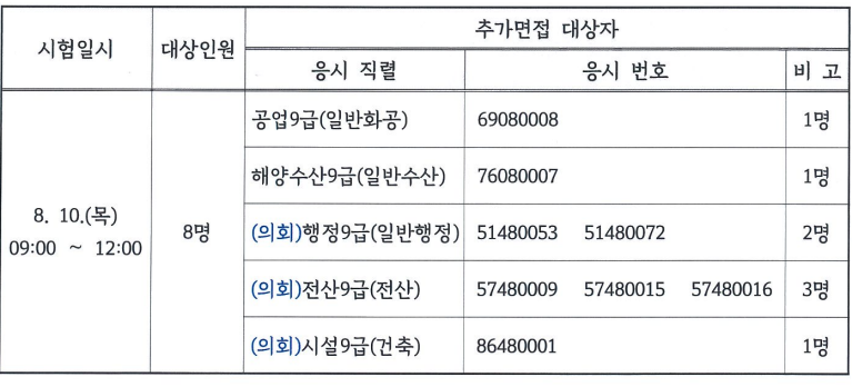 2023 지방직 9급 공무원 군포 추가 면접 응시대상
