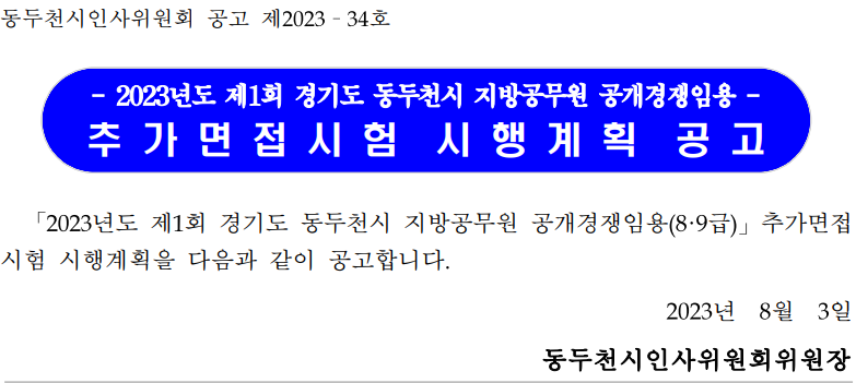 2023 지방직 9급 공무원 동두천 추가 면접 응시대상