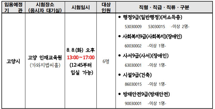 2023 지방직 9급 공무원 고양 추가 면접 응시대상