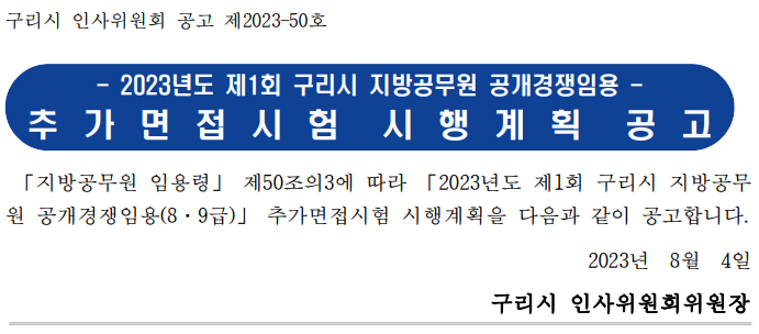 2023 지방직 9급 공무원 구리 추가 면접 응시대상