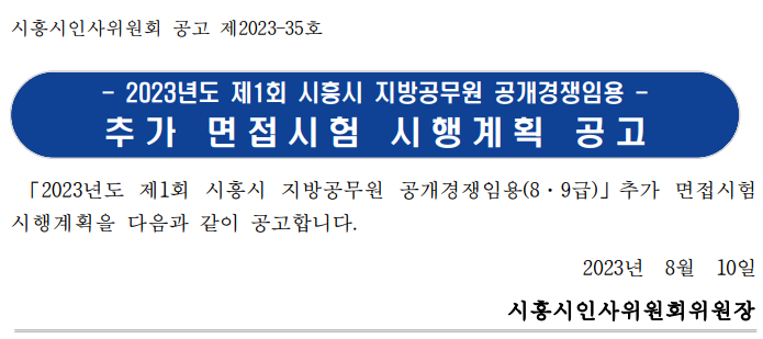 2023 지방직 9급 공무원 시흥 추가 면접 응시대상