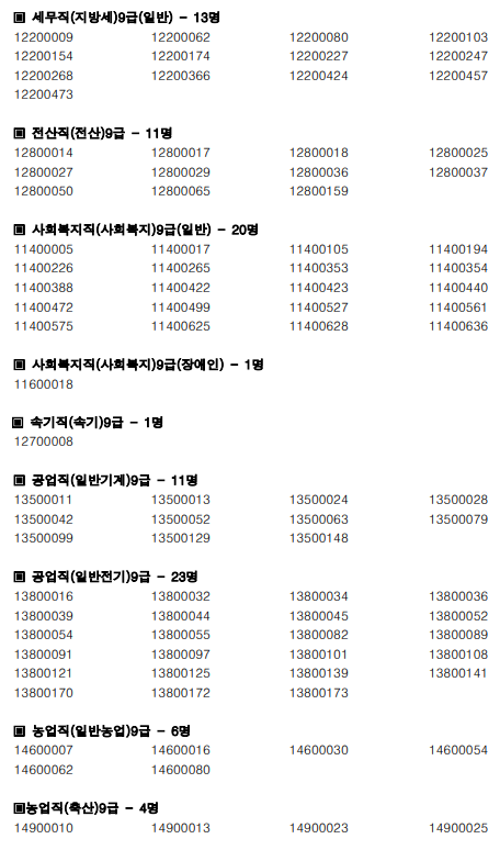 2023 9급 지방직 공무원 대구 최종합격자 확인