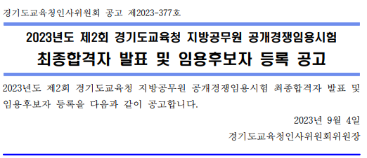 2023년도 경기도교육청 지방공무원 임용시험 결과 최종합격한 632명 예비공무원 여러분 진심으로 축하드립니다.