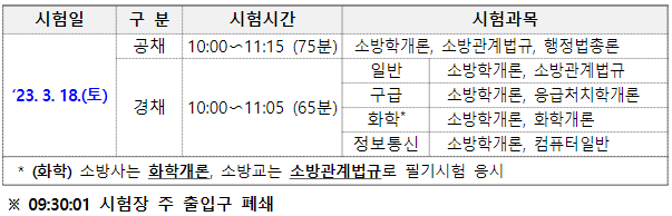 2023년 3월 18일(토)에 실시 한 소방공무원 필기시험을 보며 시험과목에 대해서 알아보겠습니다.