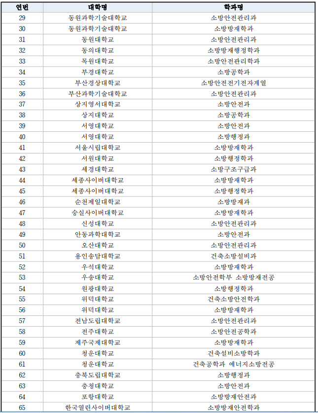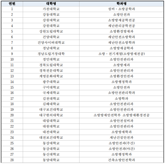 경력 채용 중 소방학과를 나온 수험생도 특채로 인정이 되는데 이 경우 2년제 이상 대학의 소방 관련학과나 그 밖의 유사한 학과를 졸업한 사람, 4년제 대학의 관련학과 재학 중이거나 재학했던 사람으로 소방청장이 정하는 관련 과목 45학점 이상 이수 자 만이 경채에 지원가능하기 때문에 이 점도 꼭 확인하셔서 지원하시길 바랍니다.