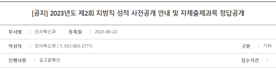 2023 지방직 필기시험 성적 사전공개 확인(대구)