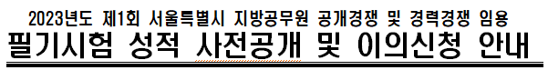 🔼2023 서울시 필기시험 성적 사전공개 안내문 확인하기🔼