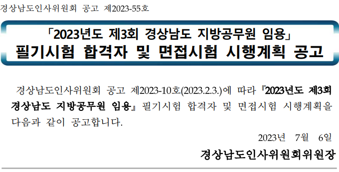 경상남도 필기 합격자 분들 모두 축하드립니다.