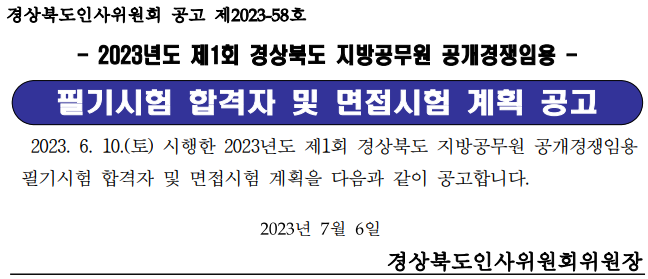 2023 지방직 9급 공무원 경북 필기시험 합격자 확인