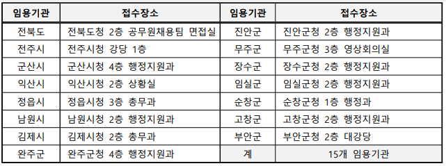 ※장애인, 저소득층 구분모집은 임용기관에 관계없이 전북도청에 서류 접수해주시면 됩니다.