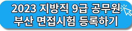 2023 9급 부산 필기시험을 합격하신 1,075명 수험생 여러분들 축하드립니다. 부산의 경우 필기시험 합격자분들께서는 면접을 보기 위해서는 필기시험 합격자 면접시험 등록을 해주셔야 합니다.