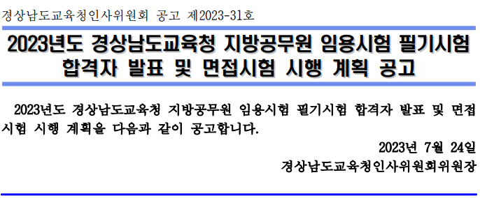 2023 지방직 9급 공무원 경남 면접시험 안내 및 확인